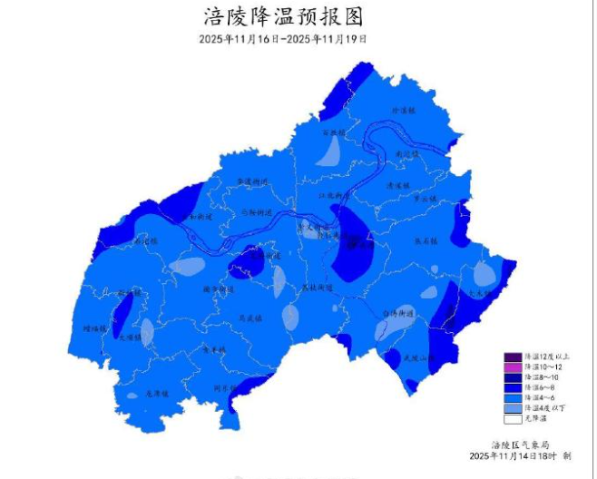 涪陵今冬首场强降温今夜来袭,19 日起回暖