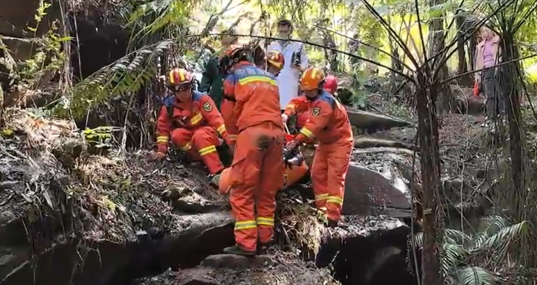 涪陵七旬老人爬山受伤,消防员紧急转运