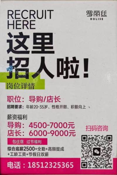 招聘啦,招聘啦 罗丽丝 (涪陵泽胜罗丽丝(泽胜包住宿) 涪陵百汇广场罗丽丝) 只要你年满18岁,不