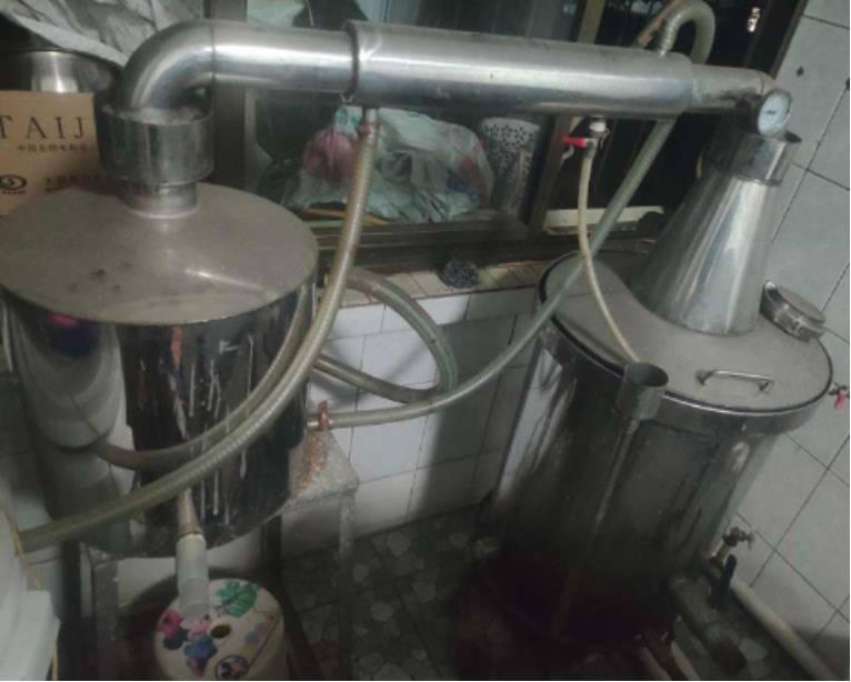 304不锈钢酿酒设备一套。一次一锅可酿酒25斤左右。燃气灶一