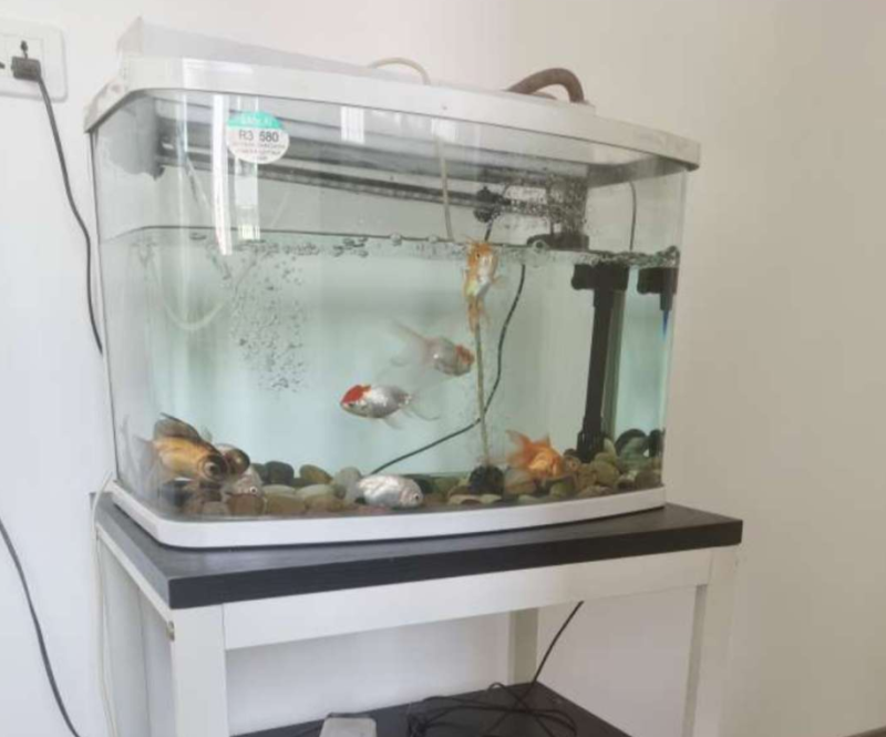 鱼缸出售 缸尺寸长58,宽25,高39,带循环泵抽氧机,100元,