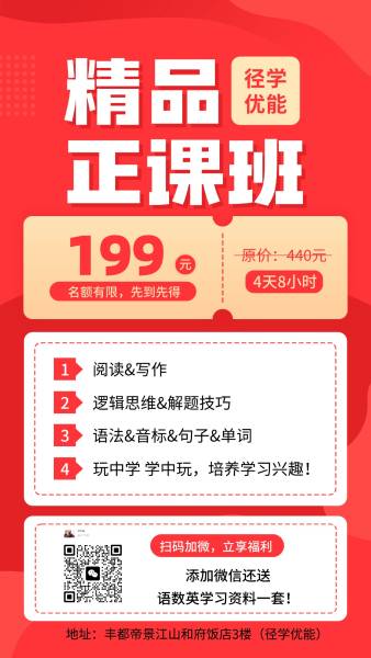 群发消息抱拳 家长们,寒假开课在即 最后3个特价名额,199元抢8小时4天课,赶紧给孩子安排起。
