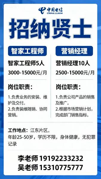 江东电信招纳贤士