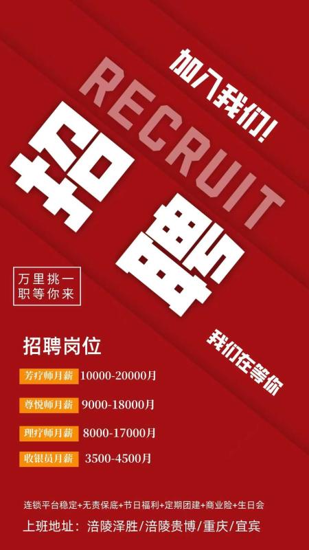 4. 具备团队合作精神,能与同事协作配合,共同完成工作任务,适应足疗店工作节奏。