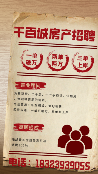 马鞍招聘房产销售,详见海报