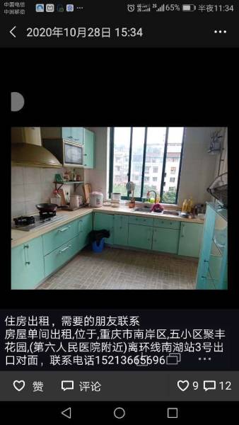 南岸区五小区聚丰花园带露台及花园单间出租(六人民院医旁),房东直租,联系电话及微信15213665696