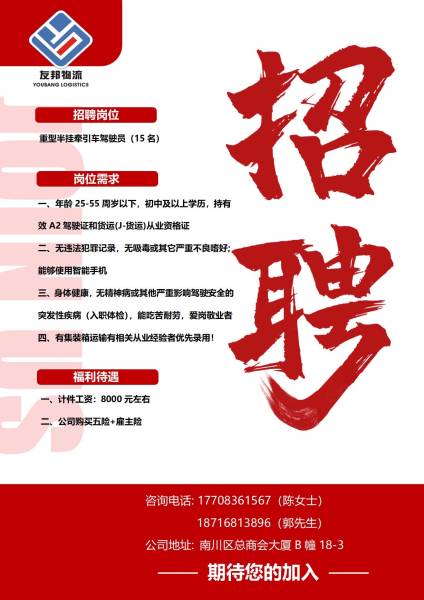 招聘物流送货驾驶员