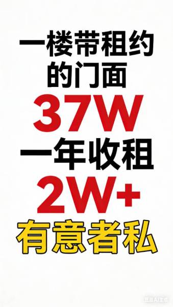 急售带租门面,年收租2W+总价37W