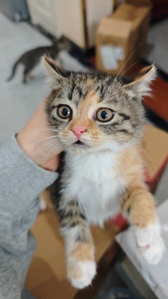 去年11月出生的,还有四只小的,一只三花猫,一只狸花猫,一只奶牛和一只纯黑的猫,最后两张照片是他们父