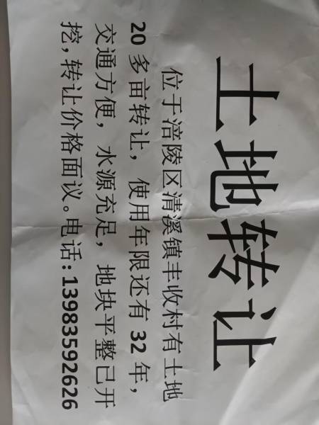 位于涪陵区清溪镇丰收村有土地20多亩转让,使用年限还有32年,交通方便,水源充足,地块平整已开挖,转
